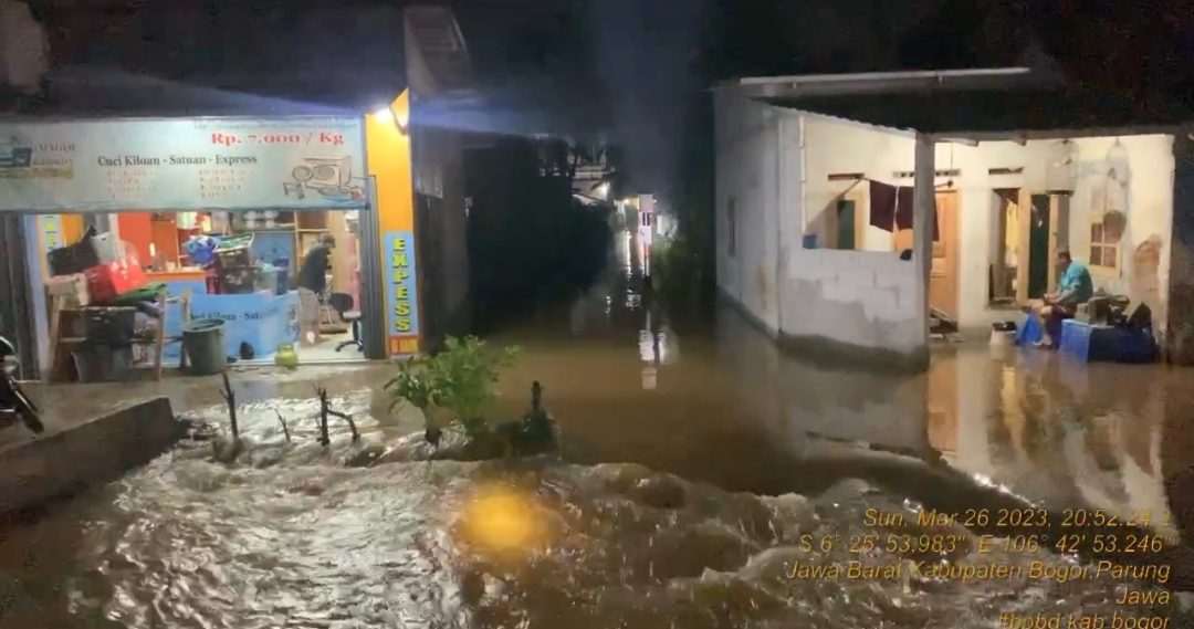 Triberita.com, Bogor – Hujan dengan intensitas tinggi mengakibatkan air meluap yang terjadi pendangkalan aliran kali Rengas sehingga mengakibatkan banjir pada Minggu 26 Maret 2023.