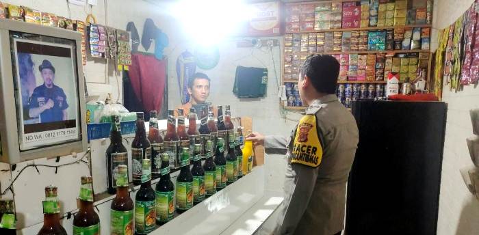 Anggota Jaga Polsek Tempuran Aipda R.Oktraia bersama Ipda Asep. JPS melaksanakan patroli prekat dengan sasaran miras disejumlah toko jamu yang ada di wilayah Kecamatan Tempuran.