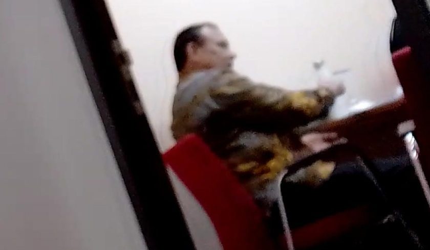 Dalam foto terlihat sosok pria yang diduga Firli berada di sebuah ruangan yang mengenakan pakaian batik dengan celana hitam sedang duduk di sebuah kursi berwana merah. Diduga Firli tengah menjalani pemeriksaan terkait kasus dugaan pemerasan terhadap Syahrul Yasin Limpo.