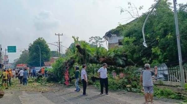 Pohon tumbang tersebut mengakibatkan arus lalu lintas di sekitar Jalan Ahmad Yani Pasirkareumbi, padat sehingga menganggu lalu lintas kendaraan.
