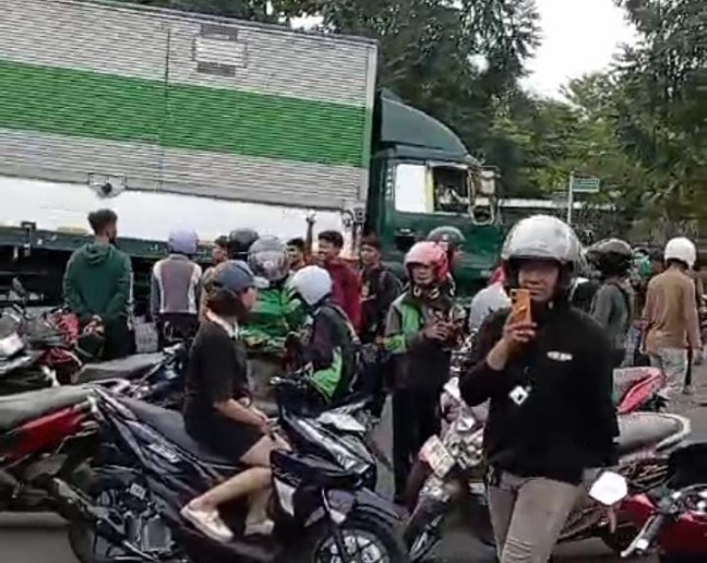 Puluhan pengendara mobil dan motor yang melintas berada di depan truk tersebut dihantam tanpa ampun.