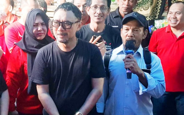 Aktor komedian yang diusung PDI Perjuangan ini didampingi Ketua DPC PDIP Kabupaten Bekasi, Soleman dan anggota DPRD Kabupaten Bekasi Nyumarno.