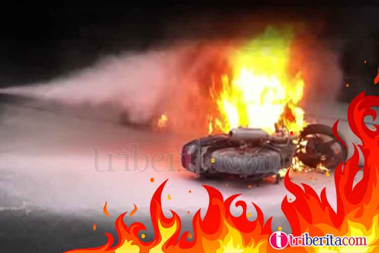 Akibat peristiwa tersebut, bagian mesin serta body sepeda motor hangus terbakar. Meski tidak menimbulkan korban jiwa, pemilik sepeda motor mengalami kerugian hingga jutaan rupiah. (Ful)