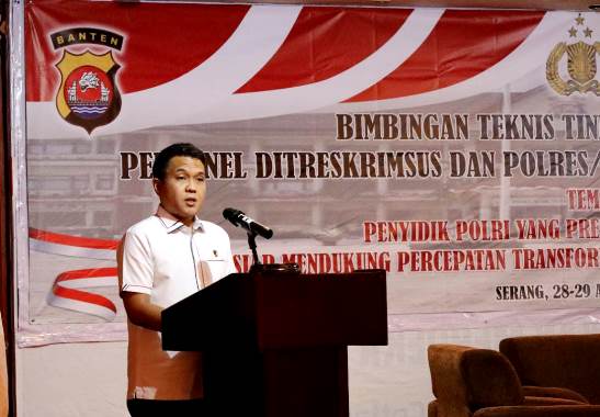 “Selaku Ditreskrimsus Polda Banten, saya menyampaikan apresiasi kepada seluruh penyidik atau penyidik pembantu Ditreskrimsus dan Polres Jajaran Polda Banten yang telah hadir dalam acara ini, hal ini membuktikan keseriusan Polri dalam mendukung Good Goverment and Clean Goverance, Polri juga berkewajiban mengarahkan fungsi reserse di seluruh satker dan Satwil jajaran dalam melaksanakan tugas pokoknya dan pelayanan kepada masyarakat, serta sebagai pedoman bagi pelaksana pada semua tingkatan organisasi di jajaran Reserse Polri,” ucapnya.
