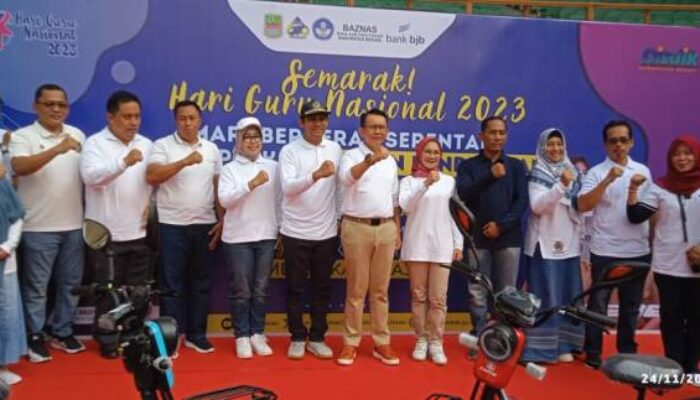 Diakhir acara, Pj Bupati Dani Ramdan beserta Sekertaris Daerah (Sekda) Dedy Supriadi, Ketua TP PKK Ria Sabaria, dan Asisten Daerah (Asda), para perangkat daerah serta jajarannya, bersama TPPKS se-Kabupaten Bekasi, melakukan kegiatan jalan sehat di area stadion Wibawa Mukti, yang merupakan rangkaian dari acara ‘Semarak Hari Guru Nasional’ 2023.