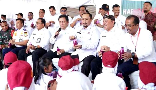 Triberita.com ǀ Kabupaten Bekasi – Memperingati Hari Pangan Sedunia (HPS), Pemerintah Kabupaten (Pemkab) Bekasi, melakukan kampanye gerakan minum jus kepada masyarakat kalangan pelajar. Gerakan sebagai bagian dari konsumsi pangan sehat dan bergizi ini dilaksanakan di SD Negeri Wanajaya 01-03 Kecamatan Cibitung, Rabu (23/10/2024)