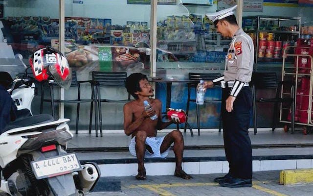 Dalam menjalankan tugasnya, Aipda Kusnandar dengan sigap memberikan bantuan kepada seorang ODGJ yang terlihat tidak mengenakan pakaian.