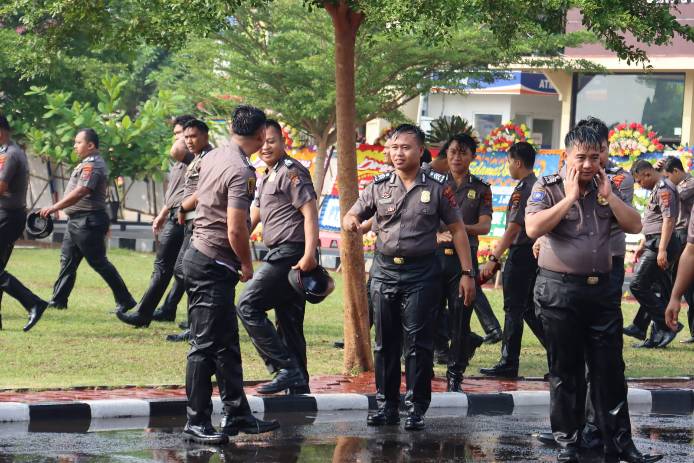 “Pada kesempatan ini, saya selaku Kapolres, mengucapkan selamat kepada seluruh anggota beserta keluarga yang pada hari ini mendapatkan kenaikan pangkat setingkat lebih tinggi.