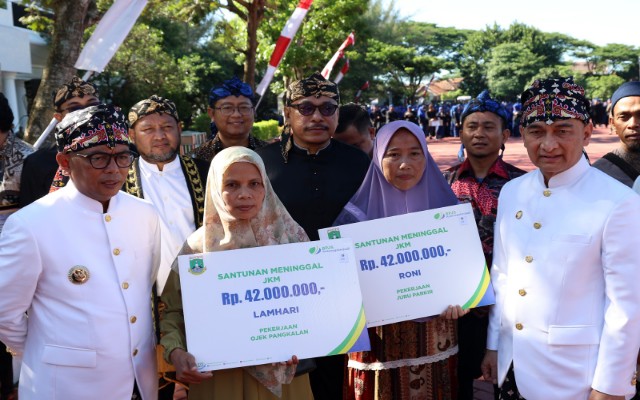 Santunan jaminan kematian, diberikan kepada pekerja informal masing-masing senilai Rp 42 juta yang diberikan kepada para ahli waris almarhum Aam Roni sebagai juru parkir asal Kota Serang serta almarhum Lamhari yang bekerja sebagai ojek pangkalan asal Kabupaten Serang.