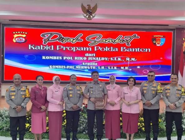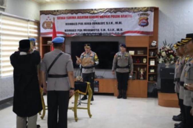 Kapolda Banten Irjen Pol Abdul Karim memimpin upacara serah terima jabatan (Sertijab) Kabid Propam Polda Banten dari Kombes Pol Riko Junaldy kepada Kombes Pol Murwoto, bertempat di Ruang Perjamuan Polda Banten, pada Rabu (6/3/2024).