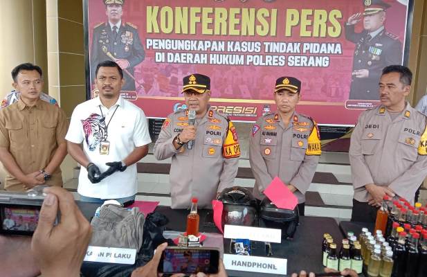 Kapolres Serang AKBP Condro Sasongko menjelaskan, pengungkapan kasus pembunuhan ini merupakan hasil penyelidikan Tim Resmob dipimpin langsung oleh Kasatreskrim AKP Andi Kurniady ES.