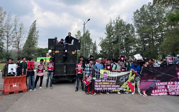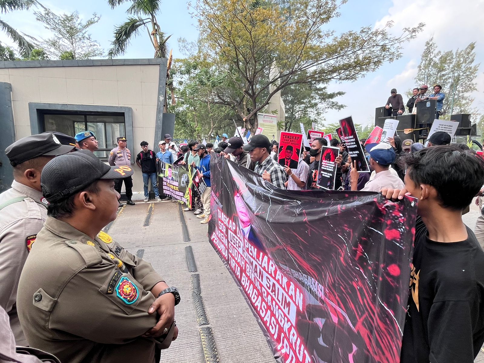 Kordinator Aksi Syahridin mengatakan aksi yang dilakukan pihaknya ini didasari sejumlah kajian-kajian yang mengindikasikan bahwa mantan Direktur Utama Perumda Tirta Bhagasasi melakukan tindakan Korupsi Kolusi dan Nepotisme atas laporan audit yang fiktif.