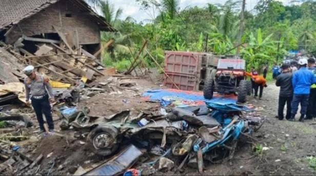 Akibatnya, lanjut dia, truk minibus terguling hingga menabrak sebuah rumah yang berada di lokasi kejadian.