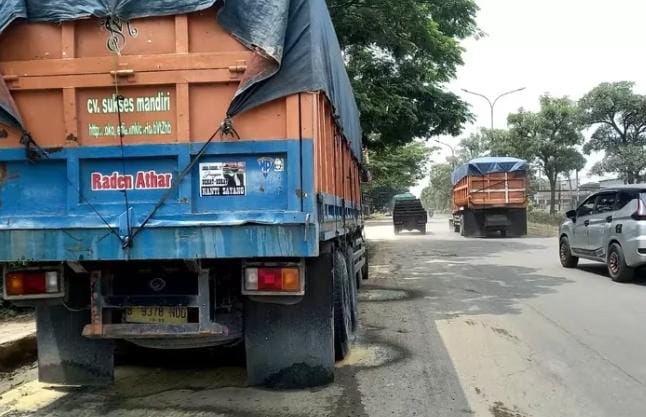 Bahkan lanjut Sopian, selain lewat, sejumlah truk pasir bahkan parkir seenaknya di bahu jalan dengan air yang terus mengalir keluar dari dalam bak truk.