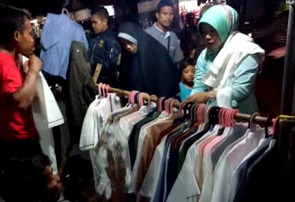 Seperti terlihat di deretan pedagang pakaian, pembeli yang sedang memilih-milih baju dan pakaian yang dipajang.