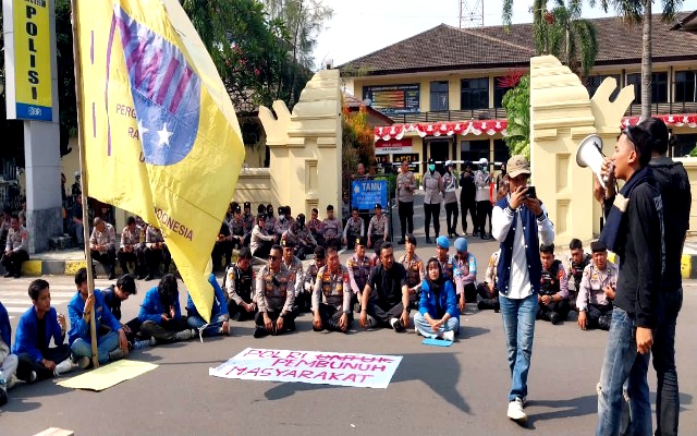Sementara mahasiswa yang tergabung dalam PMII Kota Cilegon mendatangi markas kepolisian Polres Cilegon.