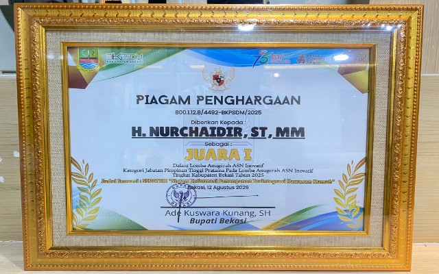 Prestasi yang telah diukir, Nurchaidir yang dikenal inovatif, berhasil meraih juara ASN Inovatif 2025 berkat aplikasi SIPATUH (Sistem Penanganan Kawasan Kumuh Terintegrasi) untuk mengatasi masalah Rutilahu dan perumahan di Kabupaten Bekasi.