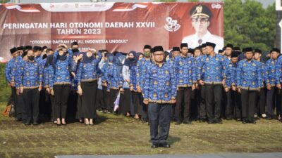 Triberita.com, Bandung Barat – Perdana pada hari pertama kerja, Pemerintah Daerah Kabupaten Bandung Barat gelar Upacara Peringatan Hari Otonomi Daerah XXVII tahun 2023 di Lapang Mekarsari (26/4).