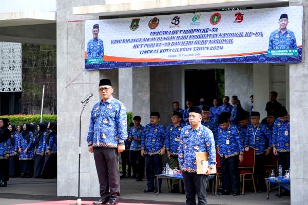 Triberita.com | Cilegon Banten – Pemerintah Kota Cilegon melaksanakan upacara dalam rangka peringatan HUT Korpri ke-53 yang dirangkaikan dengan Hari Kesehatan Nasional ke-60 dan HUT Persatuan Guru Republik Indonesia (PGRI) ke-79 serta Hari Guru Nasional tingkat Kota Cilegon tahun 2024, yang digelar di Halaman Kantor Wali Kota Cilegon, Jumat (29/11/2024).