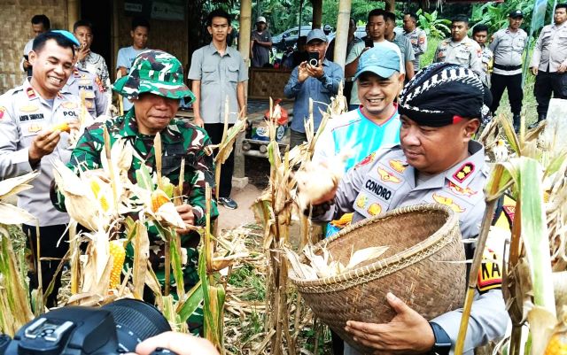 Triberita.com | Serang Banten – Kapolres Serang AKBP Condro Sasongko bersama Muspika Kecamatan Kopo dan Kelompok Tani melaksanakan panen raya jagung di Desa Ranca Sumur, Kecamatan Kopo, Kabupaten Serang, Provinsi Banten.