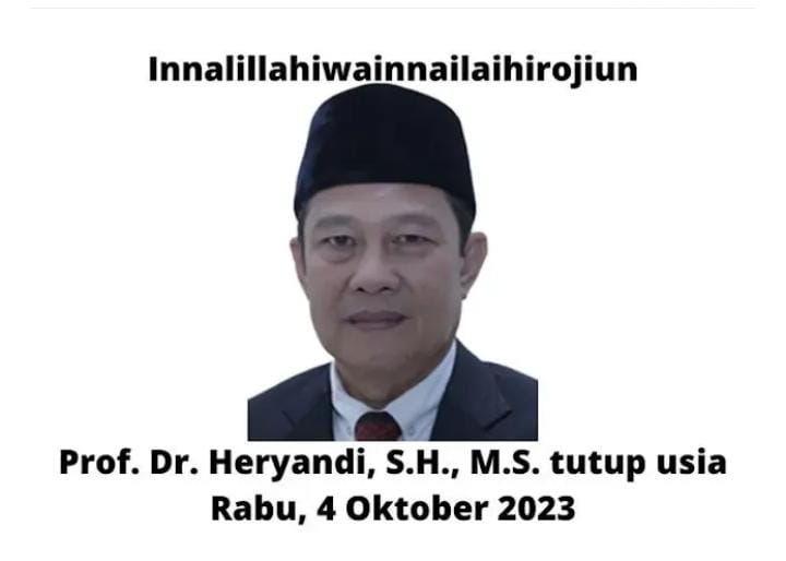 Kabar meninggal eks Wakil Rektor I Unila ini dibenarkan oleh Sopian Sitepu, selaku kuasa hukumnya.”Benar kabar itu, Prof Heriyandi telah meninggal dunia pada Rabu (4/10/2023).