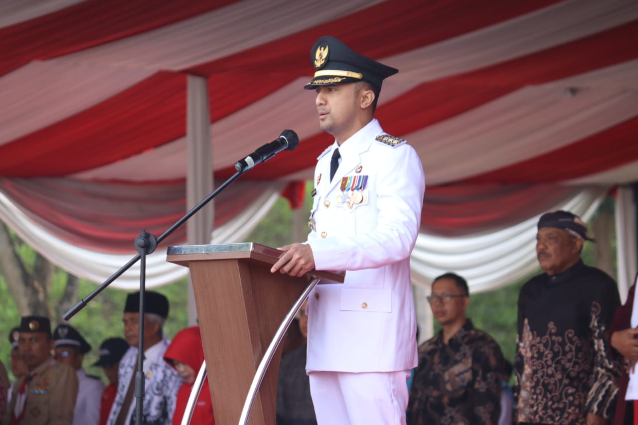 Bupati Bandung Barat, Hengky Kurniawan, memberikan kado spesial secara simbolis uang hadiah pembinaan senilai Rp 25 Juta sebagai penghargaan Kepada Kepala Desa Kertawangi, Yanto atau pria yang kerap disapa Steve Ewon.