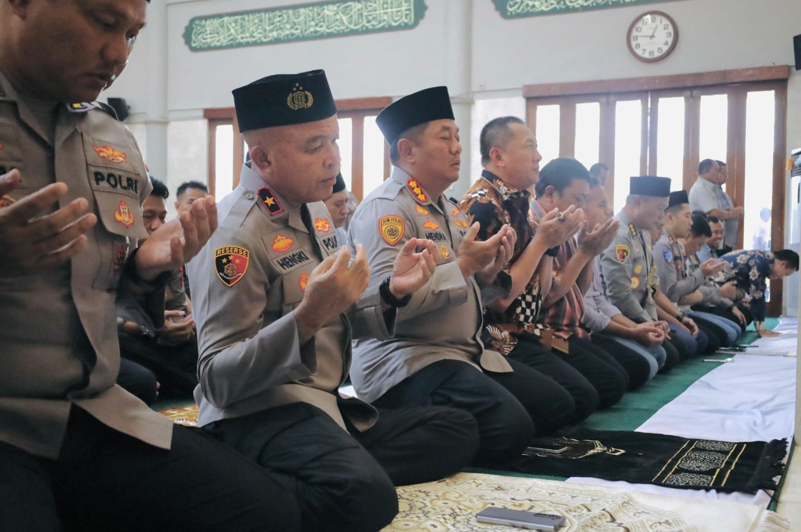 Sholat ghoib dipimpin oleh Imam Masjid Baiturrahman Polda Banten dan diikuti oleh Kapolda Banten beserta Pejabat Utama Polda, personel, serta jamaah yang hadir. Suasana khidmat menyelimuti jalannya doa bersama untuk almarhum.