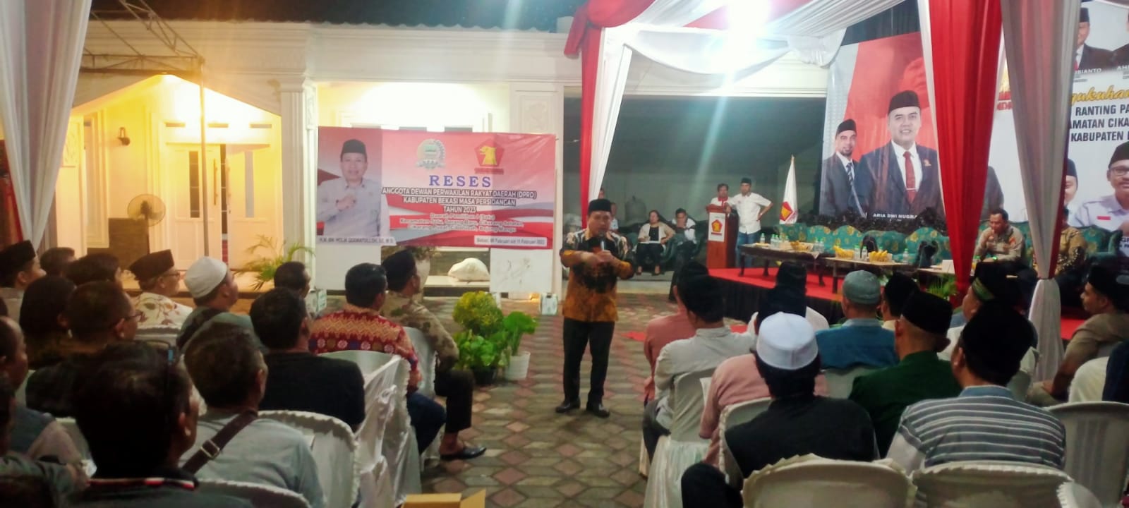 Triberita, Kabupaten Bekasi – Untuk menyerap langsung Aspirasi serta usulan masyarakat dalam Reses. Ketua DPRD Kabupaten Bekasi dari Fraksi partai Gerindra, BN Holik Qodratullah melaksanakan Reses DPRD Kabupaten Bekasi masa persidangan tahun 2023 di Daerah Pemilihan (Dapil) I yang meliputi wilayah Kecamatan Cikarang Selatan, Bojongmangu, Serang Baru, Cibarusah, Setu, Cikarang Pusat. Acara ini dihadiri oleh para tokoh masyarakat Dapil I, Kader Partai Gerindra, Kepala Desa dan Muspika Kecamatan Cikarang Selatan. Acara ini dilaksanakan di Kediaman Ketua DPRD Kabupaten Bekasi, Kampung Kukun, Desa Ciantra, Kecamatan Cikarang Selatan, Kabupaten Bekasi. Pada Sabtu (11/02/23).