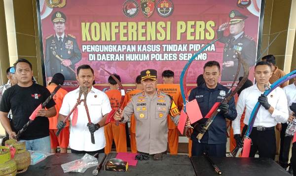 “Ada sebelas oknum remaja yang kami amankan karena diduga terlibat dalam peristiwa penyerangan yang terjadi beberapa waktu lalu. Sebanyak 8 senjata tajam dan stick golf diamankan dari kelompok berandal ini,” ujar Kapolres Serang AKBP Candra Sasongko, Senin (4/3/2024).