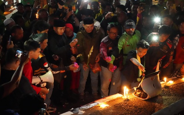 Dalam kegiatan tabur bunga di Tugu Landmark Simpang Kota Cilegon, pada Sabtu (30/8/2025) malam, sekitar pukul 19.40 WIB, Robinsar sampaikan belasungkawanya atas kejadian ini.