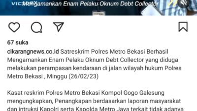 Dimana pada berita sebelumnya, “Viral, Berbanding Terbalik Dengan Kapolda Metro Jaya, Polres Metro Bekasi Justru Membolehkan Aksi Debt Collector Tarik Kendaraan Dijalan” keberhasilan Jajaran Satreskrim Polres Metro Bekasi kembali dikomentari netizen. hal ini didasari usai ketegasan arahan Kapolda Metro Jaya dalam memberantas aksi premenisme berkedok debt collector.