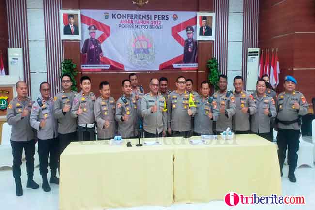 triberitacoom – Kab Bekasi – Dalam konferensi pers Kaledioskop akhir tahun, Kapolres Metro Bekasi Kombes Pol Gigion Arif Setyawan, mengungkapkan adanya peningkatan angka Kriminal selama tahun 2022 sebanyak 75 Persen, di bandingkan tahun 2021. Sabtu, (31/12/2022)
